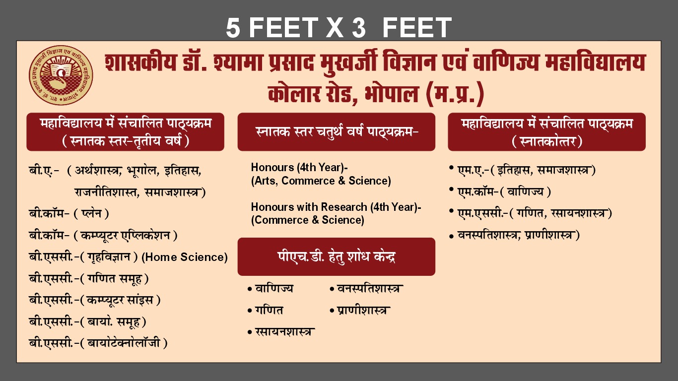 The Library of Govt. Dr. Shyama Prasad Mukharjee Science & Commerce College Bhopal was established in 08 October, 1982. The library is located on ground floor. Library plays a vital role in education.